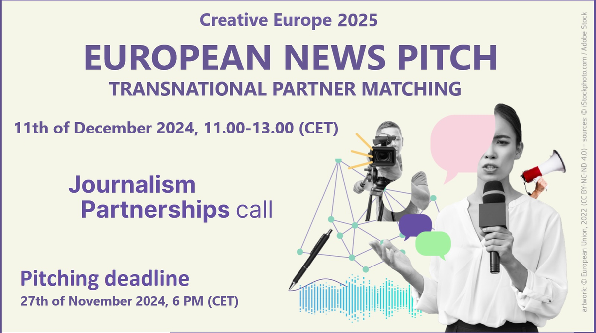 Kreativt Europas tverrsektorielle tilskuddsordning Partnerskap for journalistikk har søknadsfrist 27. februar 2025.